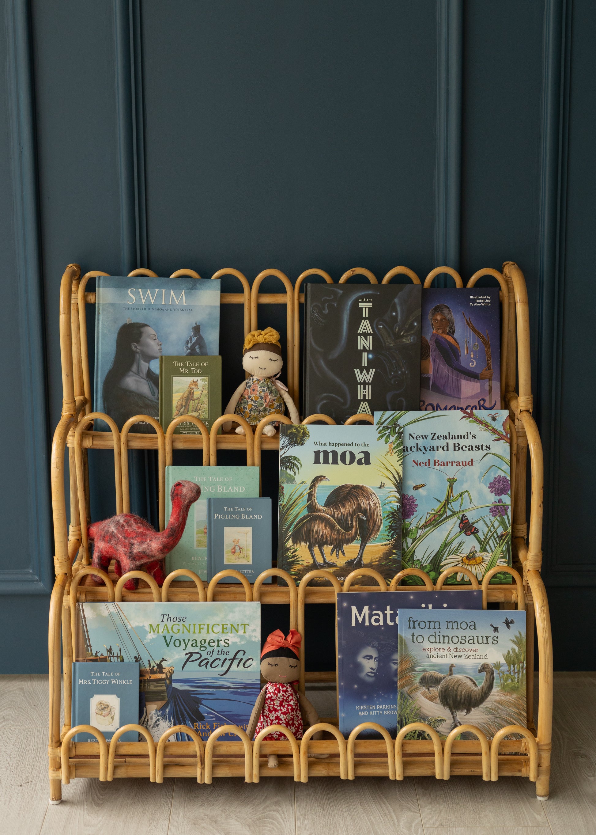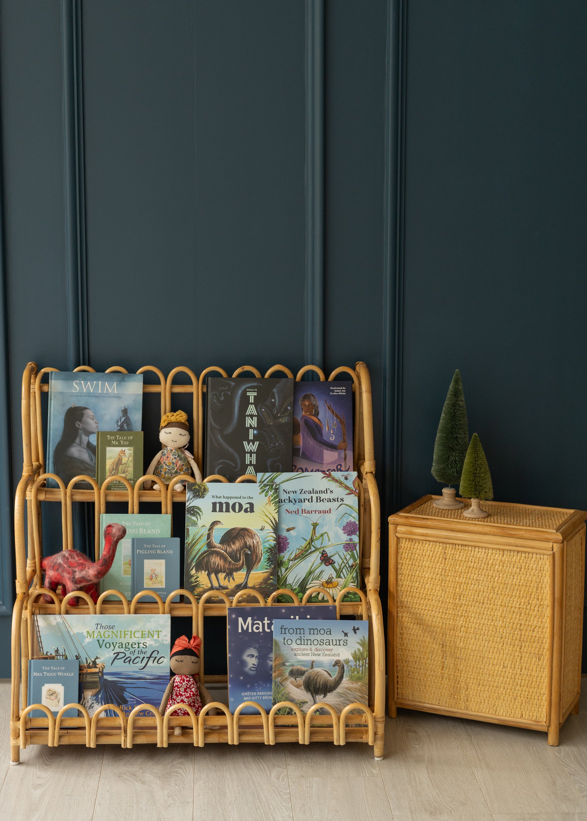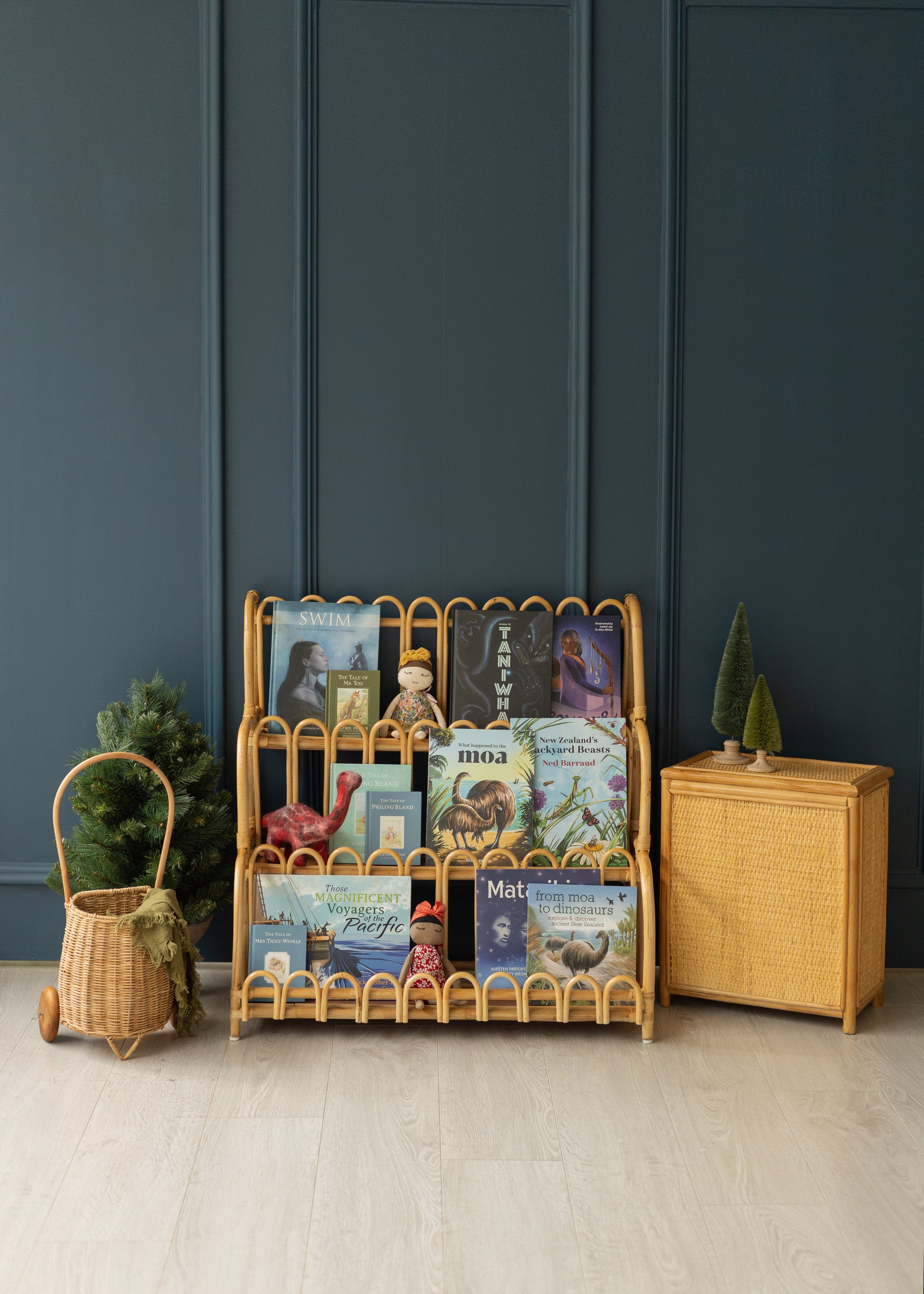 Bring a touch of natural beauty into your tamariki’s space with our handcrafted Rattan Bookshelf, designed to hold their favourite pukapuka, treasures, and keepsakes.